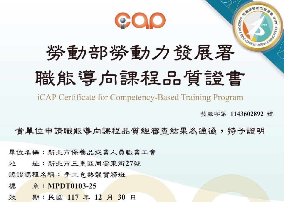 【手工皂熱製】勞動部iCAP認證